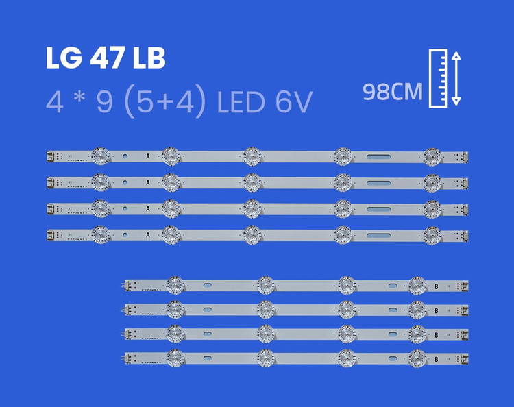 این بک لایت مناسب تلویزیون 47 اینچ LG 47LB می باشد. شامل 4 خط ال ای دی به طول 98 سانتیمتر می باشد.