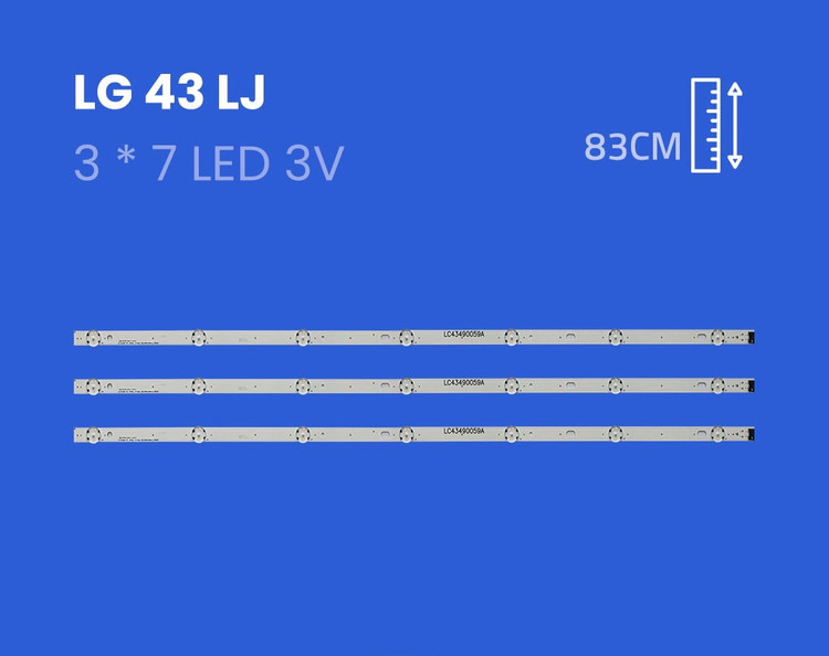 این بک لایت مناسب تلویزیون 43 اینچ LG سری های 43LJ و 43LH و 43UJ و 43LF و 43UK و 43UF می باشد. این بک لایت شامل 3 خط ال ای دی به طول 83 سانتیمتر می باشد. هر شاخه دارای 7 ال ای دی و 3 ولت می باشد.