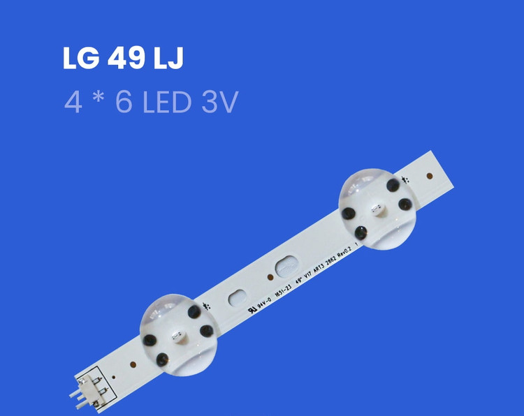 این بک لایت مناسب تلویزیون 49 اینچ LG سری های 49UJ و 49LJ و 49LH می باشد. این بک لایت شامل 2 خط ال ای دی به طول 102 سانتیمتر می باشد. هر شاخه دارای 12 ال ای دی می باشد. هر ال ای دی 3 ولت می باشد.