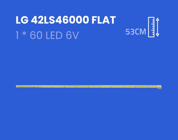 این بکلایت مناسب تلویزیون 42 اینچ LG سری های 42LM و 42LS می باشد. این بک لایت شامل 1 خط ال ای دی به طول 53 سانتیمتر می باشد. هر شاخه دارای 60 ال ای دی و 6 ولت می باشد.