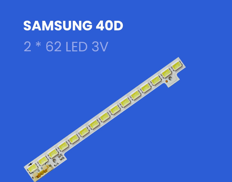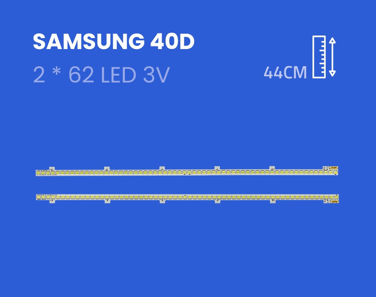 این بکلایت مناسب تلویزیون 40 اینچ Samsung مدل های 40D می باشد. این بک لایت شامل 2 خط ال ای دی به طول 44 سانتیمتر می باشد. هر شاخه دارای 62 ال ای دی و 3 ولت می باشد.